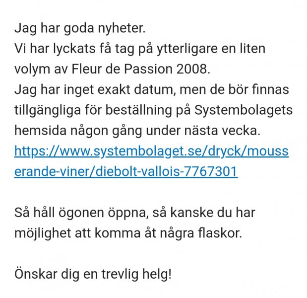 Noterar att FdP nästan dubblat i pris sen jag köpte mina -05 och -06 för några år sen. Tråkig utveckling. Vad kostade -08:an när det släpptes för några år sen? 800 kr? Är detta en sendeggad variant?Fick ett trevlig mejl idag med lite härlig information. Tänkte att jag delar med mig till er eftersom det är fredag