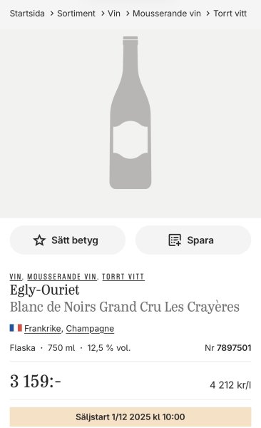 Har fått en mindre stroke idag och budat hem lite Champagne, vilket jag aldrig brukar göra, då jag till 99,999% av tiden dricker stilla viner.