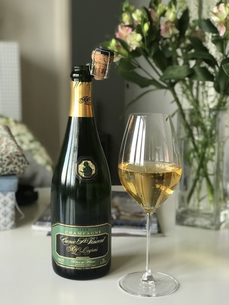 Antagligen en lagrad NV, stod sig väldigt bra mot de andra vinerna. Citrus, äpple, mineral, hint av kräftor (utan dill). Kändes ganska klassisk ordinär Champagne men väldigt habil.