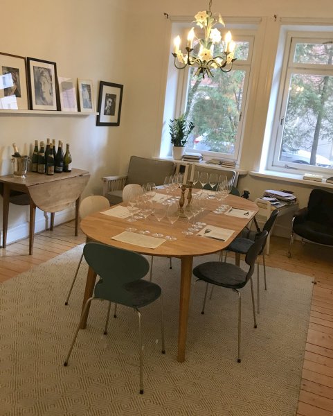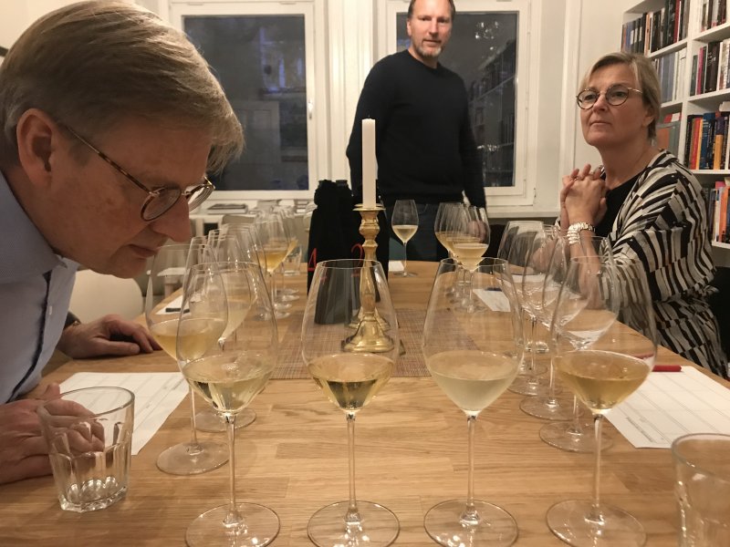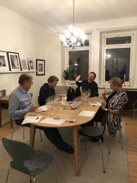 Vi tyckte hans förslag om att ha en Cremant av god kvalite, en NV, en vintage och en lite äldre mogen champagne var passande för vårt sällskap. Glädjande för oss alla gissade vi rätt på samtliga viner! Vi visste alla vilka viner det var men inte i vilka glas de fanns i.