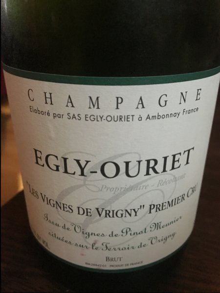 Egly-Ouriet Blanc de Noirs Grand Cru (deg juli 2012): Denna fantastiska champagne! Underbar, utvecklad, komplex, bärig och något kryddig doft med tydlig fatkaraktär. Inslag av grapefrukt, citron, äpplen, ingefära, kanel, plommon och nougat. Smaken är utvecklad, koncentrerad, bärig, frisk och mycket torr. Efter hand uppstår en liten pikant bitterhet. Jag hittar vinbär, smultron, plommon och grapefrukt. Hög syra. Drick idag – eller ännu hellre om två-tre år!