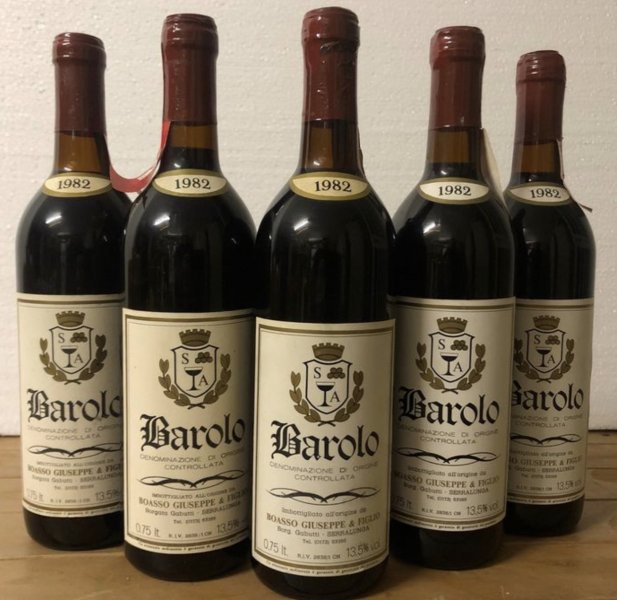 När antalet är 5 som säljs, blir du inte orolig att de var 6 fram till nyligen sen provade säljaren en flaska och kom fram till slutsatsen att sälja resten?Lite vällagrad Barolo från 1982 från Boasso Giuseppe e Figlio Gabutti, heter nu bara Boasso Gabutti. Ser rätt fina ut så ska bli spännande att pröva!