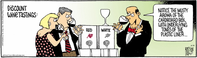 Sen vad gäller lyxproblem tycker jag att det är väl övermaga att belasta kunden för att förpackningen är undermålig, i de fall det oomtvisteligen är korken som är defekt. Tycker snarare att producenten ska få böta gällande marknadspris till kunden. (Jag inser att den forensiska undersökningen skulle kosta mer än själva vinet, men rent principiellt tycker jag att producenten skall vara ersättningsskyldig vid försumlighet, ungefär som en biltillverkare).