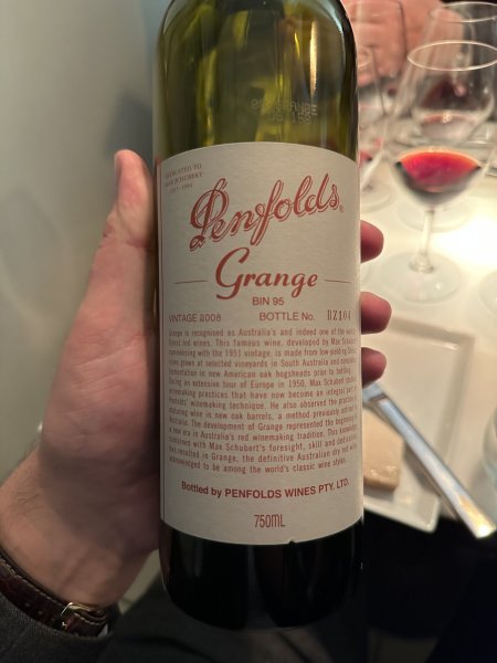 Vilken doft! Jord, blåbär, viol, eucalyptus, kaffe. Vinet är oerhört kraftfullt och komplext med mycket peppar, svarta bär, choklad, animaliska toner. Vi kom direkt in på Australien här och Jakob nämnde Penfolds snabbt men tog ett tag för oss att komma till Grange. Dricker fint nu men kommer utvecklas väl över årtionden! 96+