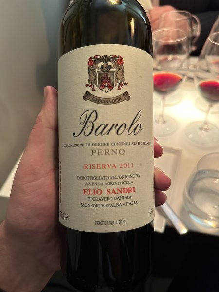 Doften skriker Italien och nebbiolo med massor av körsbärskärnor, mandel, tjära och rosor. Initialt lite stallig men det luftades bort. I munnen är det mycket tanniner och ett ordentligt kraftpaket. En väldigt traditionell stil av Barolo och dricker fint nu! 93++