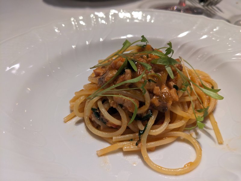Restaurang PRIMO, med sin inbjudande atmosfär och utsökta mat, var även i afton en perfekta plats för stora vinupplevelser. Med varje rätt som serverades, fann vi nya aspekter och harmonier i vinerna som kompletterade maten på ett enastående sätt. Undantaget carpaccio… Den ackompanjerades dock perfekt av vattnet! [Saknas fyra rätter (parmaskinkan, varmrätten med rådjurskött, ostbricka och dessert) samt mignardises/te/kaffe.]