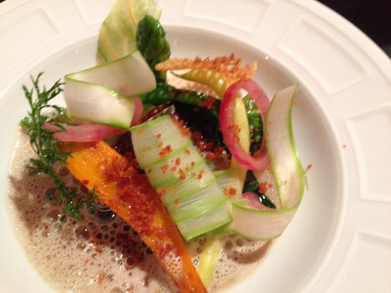 Det är en rejäl bit perfekt stekt fois gras som döljer sig under den makalösa salladen.