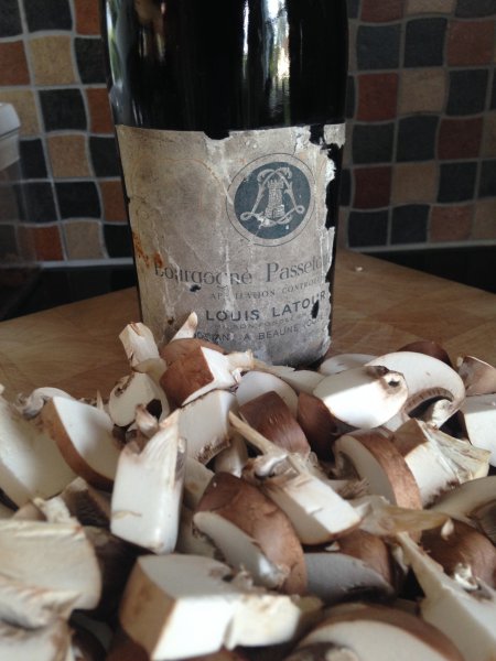 Du menar inte...Just nu - en butelj Bourgogne Passetoutgrains, Louis Latour - enligt säljaren från 50-talet och från flaskans form och innehållets beteende, så torde det stämma någorlunda.
