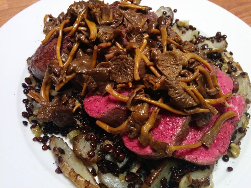 D= Doftar inte riktigt som förväntat, nypon mos inlindat i gröna blad, solstekta jordgubbar med citronsaft pressat över, anar läder med kanske tobak, vörtbröd/mörka brödkryddor. Vi är flera som hittar citrus, och andra lite vit vin dofter.