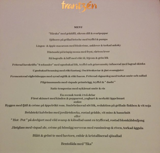Besök på Frantzén för första gången. Lite korta smaknoter då fokus framför allt var på maten.