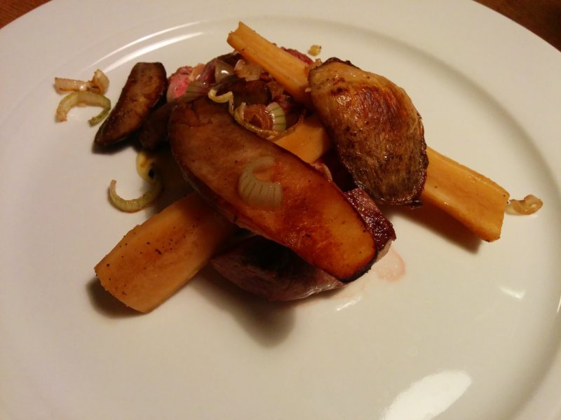 Karljohansvamp med rådjursfilé och bräserad persiljerot