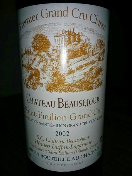 2002 Chateau Beausejour, Saint-Émilion. Jordig med vanilj och lakrits och svaga toner av svarta vinbär och körsbär. Passade riktigt bra till bägge kötträtterna.