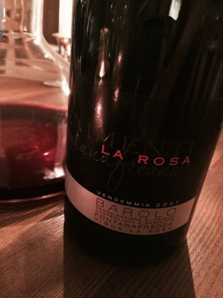 Fontanafredda Barolo Vigna la Rosa 2001 (gräddstuvad renskav och taggsvamp med potatispuré smaksatt med pecorino)