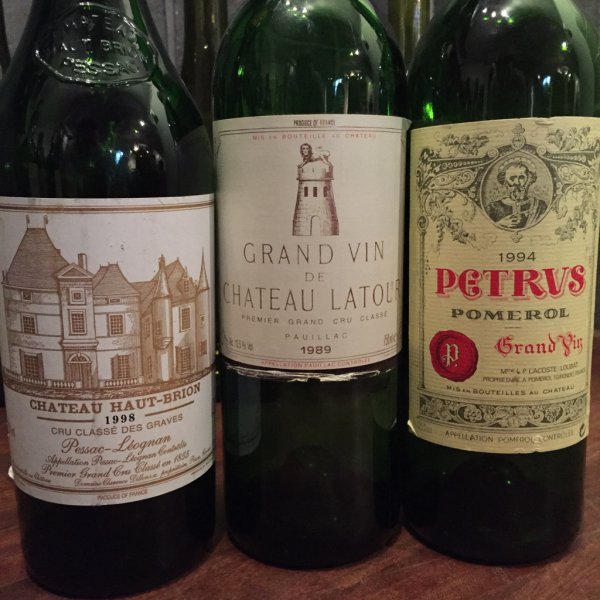 I'm well aware this is not a wine that exists. This was one bottle, blended of equal parts of Bordeaux Premier Crus en primeur of the 1989 vintage. According to the one who brought it along, and blended it, that would have been Petrus '89, Lafite '89, Mouton '89, Margaux '89, Latour '89 and the deuxième Cru La Mission Haut-Brion '89.