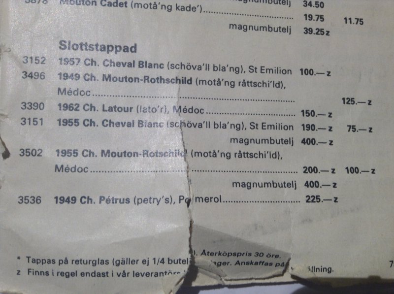 Har lurkat här i något år men när det pratas om gamla listor samma dag som jag rensar bland diverse hopsamlade vinpapper och hittar 2 systemprislistor från -56 och -74 kände jag att jag behövde dela med mig av min avundsjuka över prisläget då.