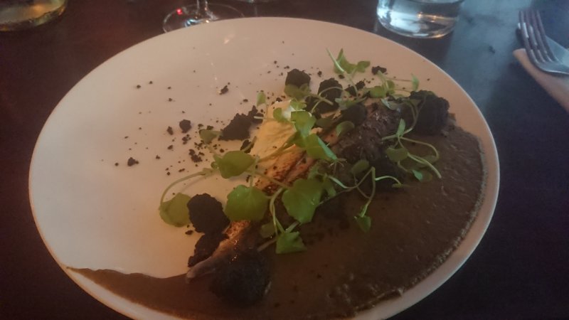 Svartpeppar och rödvinsvinägermarinerade jordgubbar. Hög syra. Inget stort vin, och försvann lite mot monstervinerna som kom efter. Men det är sådant här jag hemskt gärna dricker till vardags.