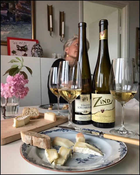 Kul! Drack 10:an Kitterle för exakt två år sedan och tyckte den var magisk redan då.Viner från Alsace. Zind Domaine Zind-Humbrecht 2014 och Domaines Schlumberger Riesling Grand Cru Kitterlé 2010, provas hemma till goda ostar från LeComptoir. Zind jättegott, friskt och fruktig, citrus och äppelblom säger Petra, härlig association tycker jag