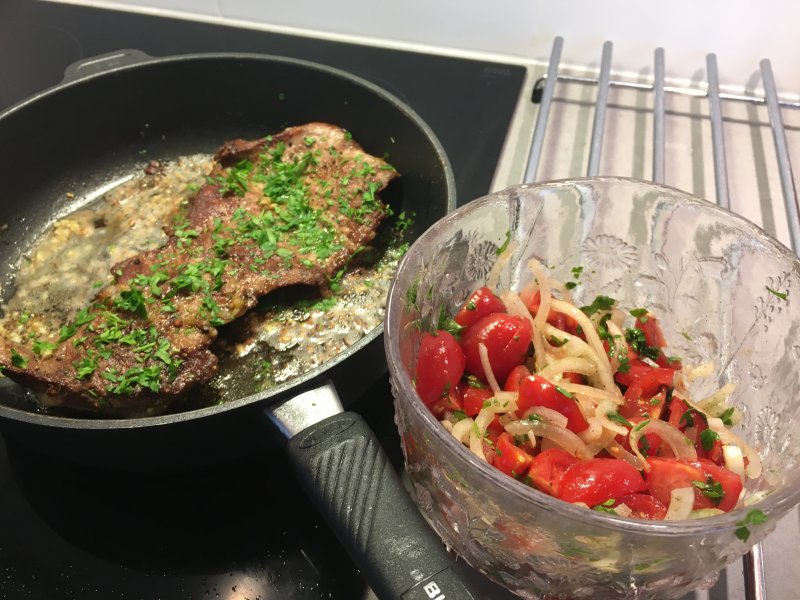 Fredagskväll och lite för sent och kallt för att fixa grillen. Iberico Secreto från AG. Nog det mest prisvärda köttet någonsin? Min Nasse-favvo jämte pluman. Stekt med vitlök, svartpeppar och persilja. Serveras endast med Romanticatomater och lök. Till det en Binet Jacquet Grande Reserve 2013.