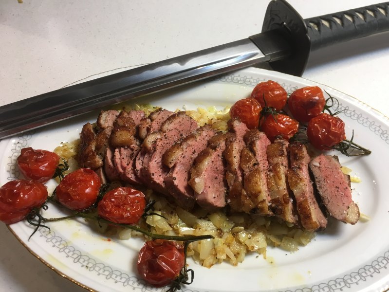 Jag har en shinken som skulle kunna skära ankbröstet så fint men med vissa praktiska svårigheter. Min Iaito på bilden kan möjligen dela en melon med kraft men inte mer:) Resultatet skulle inte vara vackert;)