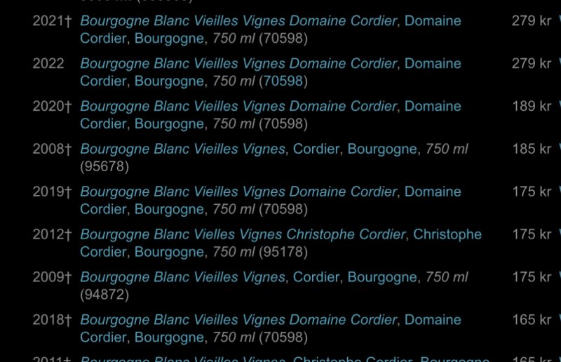 Ja för inte så länge den hade de riktigt bra priser på Bollinger där. Nu är deras priser närmast absurda..