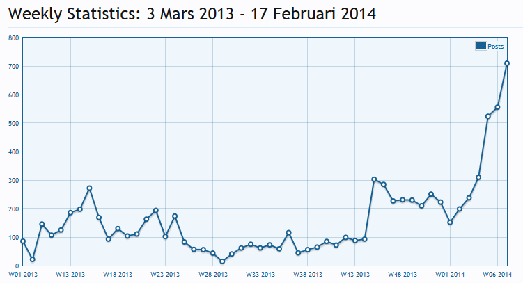 I mätning nedan har vi tagit bort sista veckan innan byte och första efter då de var väldigt ojämna pga bytet.