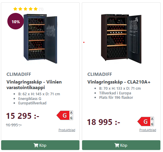 Har någon erfarenhet av CaveCool Affection Jargon 1 zon? Jag är mest orolig för ljudnivån (41dB), men alla synpunkter uppskattas. Mitt behov är en prisvärd konsumtionskyl i köket, som komplement till vinlagringsskåp i garaget. Beklagar ifall jag missat om denna vinkyl redan varit uppe för diskussion.