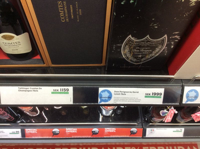 Dåså, det är ju taget alla dar i veckanNu när du säger det har jag för mig att jag såg Cristal till ett pris som jag inte tyckte var kasst på Arlanda, undrar om det inte var c:a 1200 spänn.
